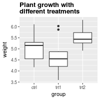 bp + ggtitle("Plant growth with\ndifferent treatments")